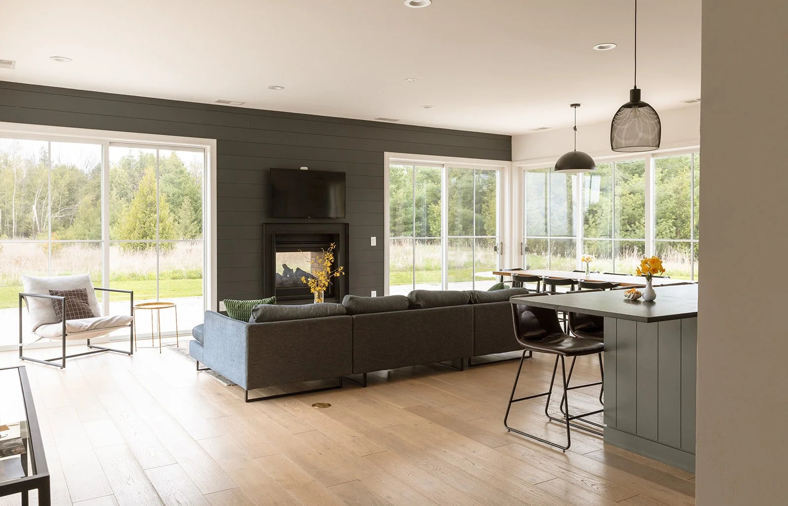 Great cooks kitchen, fully stocked with open concept living space. Sonos in kitchen. BBQ gas grill & awesome fire pit, expansive deck with dining space and lounge chairs. 20 acres of privacy.