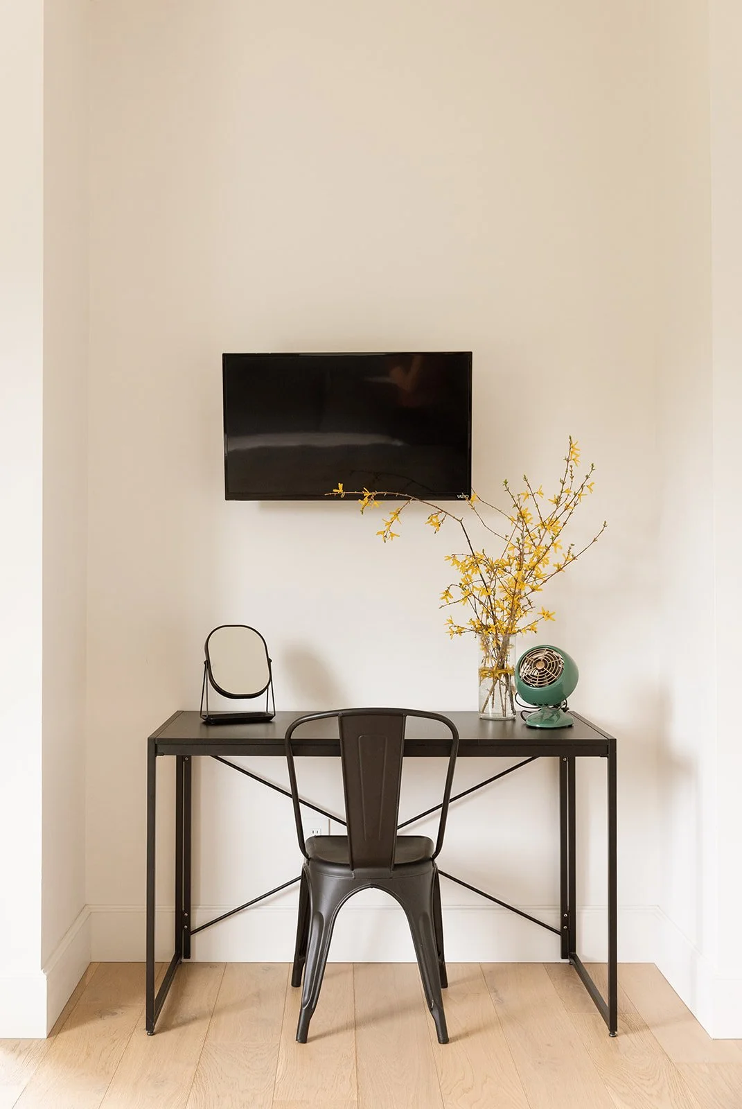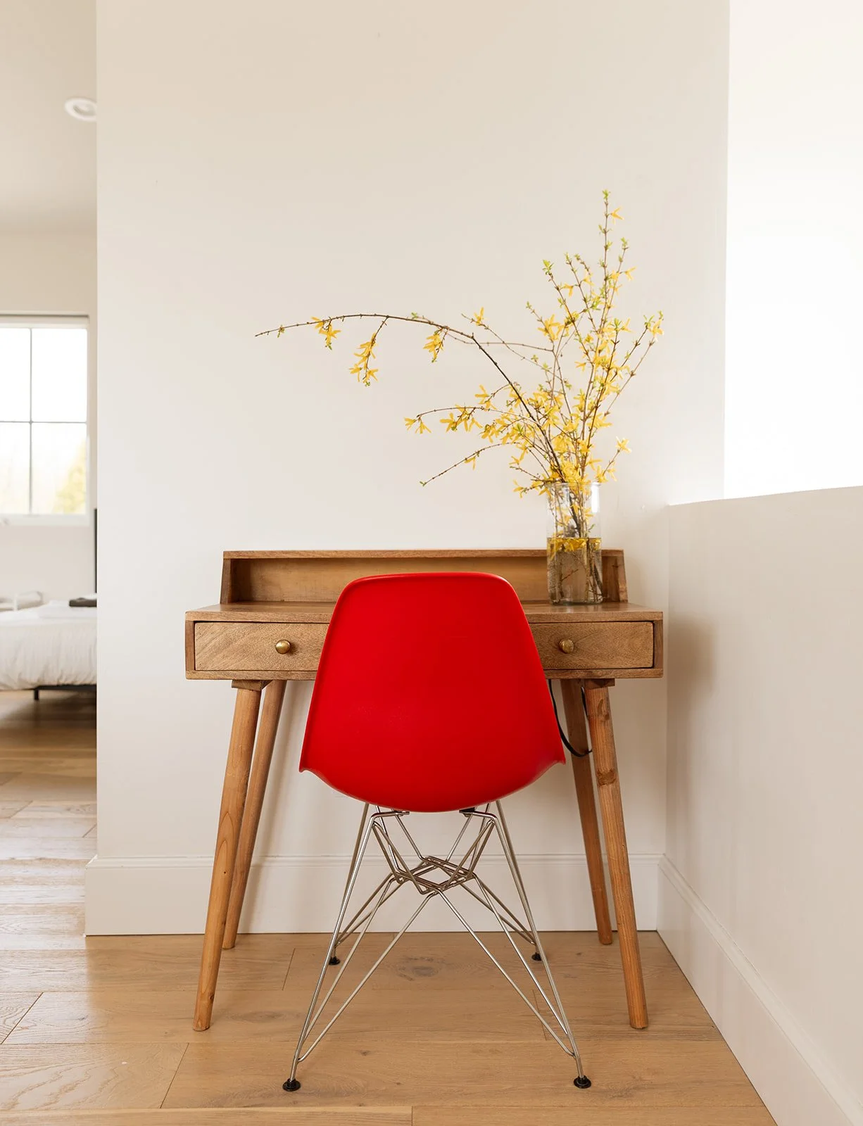 Dedicated workspace in a room with a door
